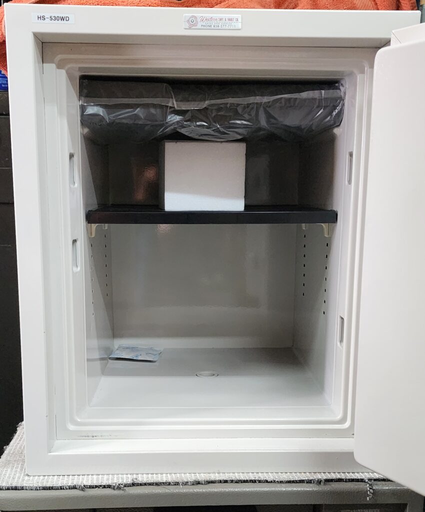 We sell both first- (new) and second-hand (used) safes. All second-hand safes are open and cleaned. Our safes have been inspected by a SAVTA Certified Professional SafeTech (CPS) and are stored at a secure indoor location. Upon purchase will set the combination to your specification. Services such as installation, bolt-down, and modification are also available; please call for a estimate.