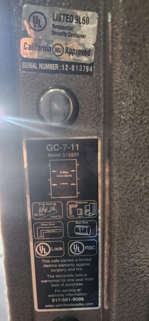 - Pre-owned U.L. Listed safe