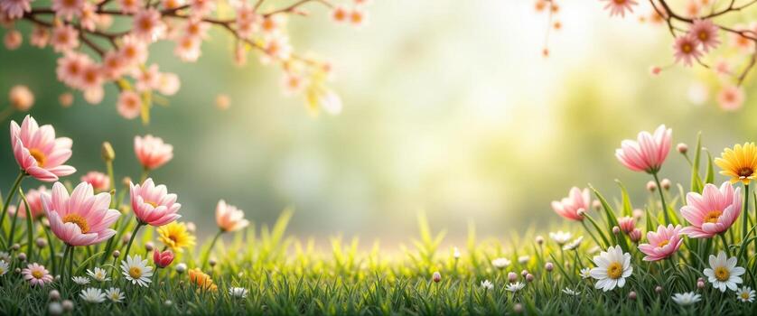 spring-flowers-in-the-grass-with-sunlight-shining-through-photo